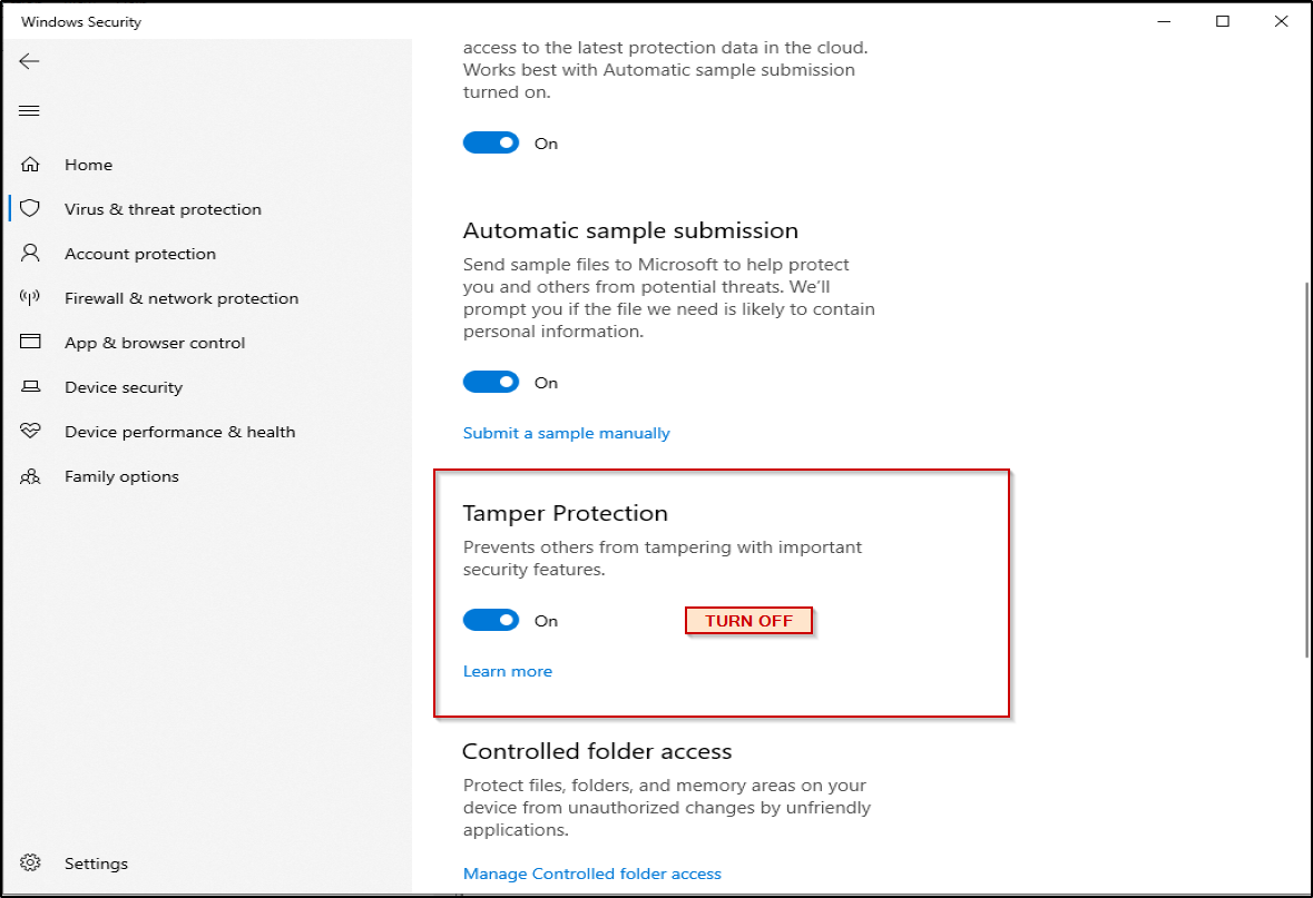 Disabling Windows Defender Antivirus