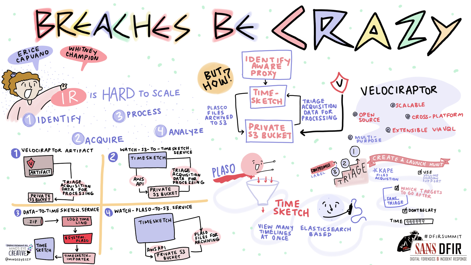 SANS really put on a virtual summit this year for the DFIR community. One of the most fun things are the posters showned below. You can also get these directly from SANS: A Visual Summary of SANS DFIR Summit 2021. These were drawn LIVE by Aston Rodenhiser who has done some amazing work. I am just going to leave these here for the summary of the conference because they are great.